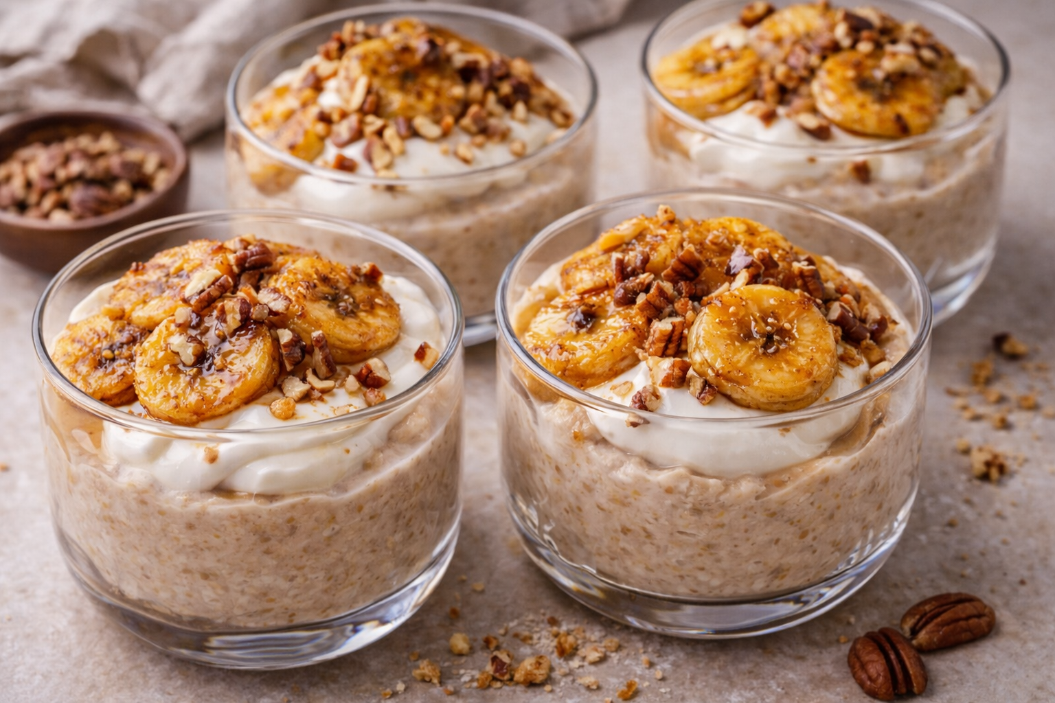 Descubra como fazer um delicioso pudim de aveia e banana caramelizada. Conheça mais aqui!