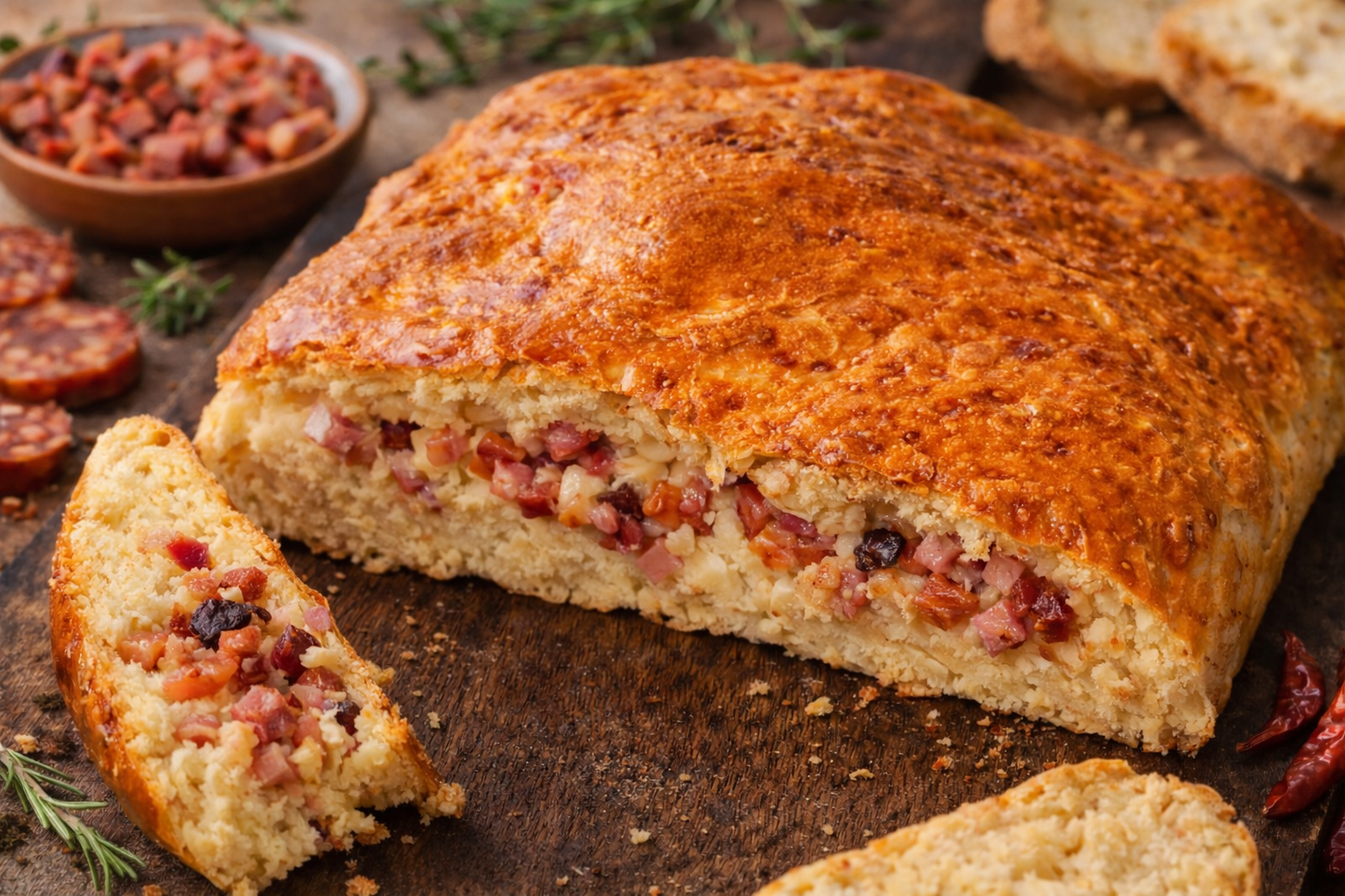 De véspera, peneire a farinha para um monte e faça uma cova no meio. Deite o sal, derreta a manteiga e deite-a ainda quente, sobre a farinha. Vá mexendo e adicionando água morna até a massa se despegar das mãos. Amasse muito bem. Transfira a massa para uma taça, cubra com um pano. Deixe repousar por 12h.