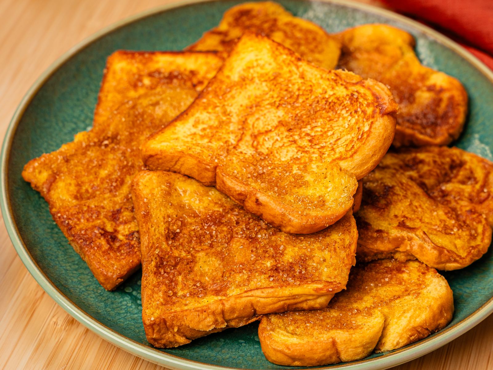 Disponha as fatias de pão numa travessa e regue-as com a mistura preparada, deixando absorver bem.