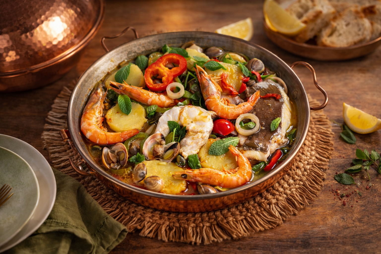 A cataplana de peixe é um dos pratos mais emblemáticos da gastronomia algarvia, preparada na tradicional panela de cataplana que concentra aromas e intensifica sabores. Com peixe fresco, tomate, pimentos, cebola e ervas aromáticas, esta receita combina simplicidade e riqueza de sabor num prato perfeito para partilhar à mesa. Descubra como preparar uma autêntica cataplana de peixe, suculenta e cheia de tradição.