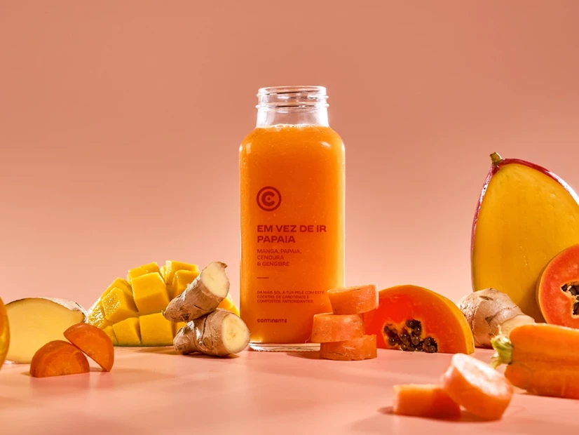Descasque a manga, a papaia e a cenoura.