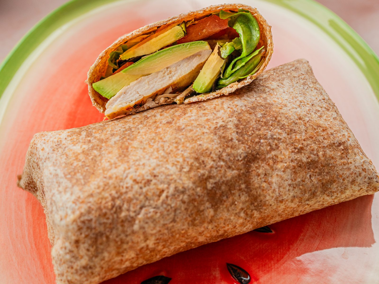 Sirva os wraps de frango cortados ao meio.