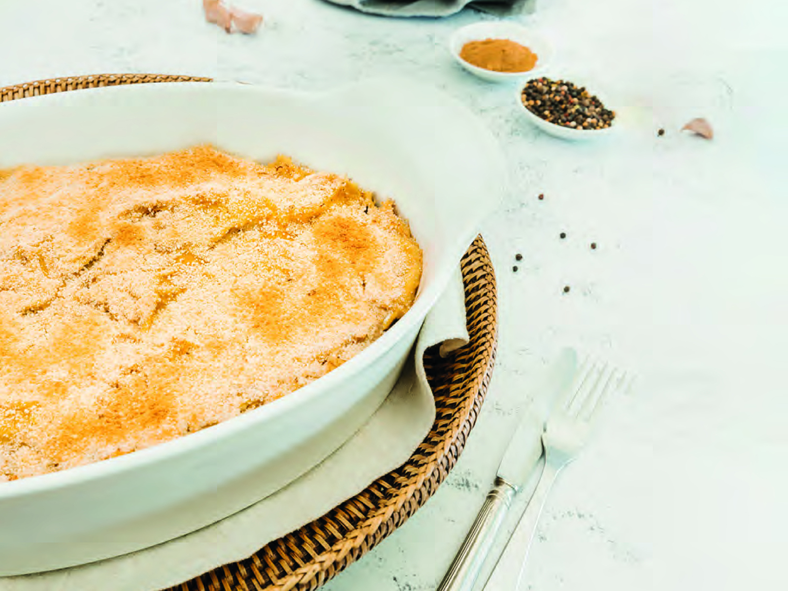 Transfira para uma assadeira. Polvilhe com pão ralado e regue com um fio de azeite. Leve ao forno (180 ºC) cerca de 25-30 minutos (ligue o grill nos últimos 5 minutos ou até dourar a superfície).