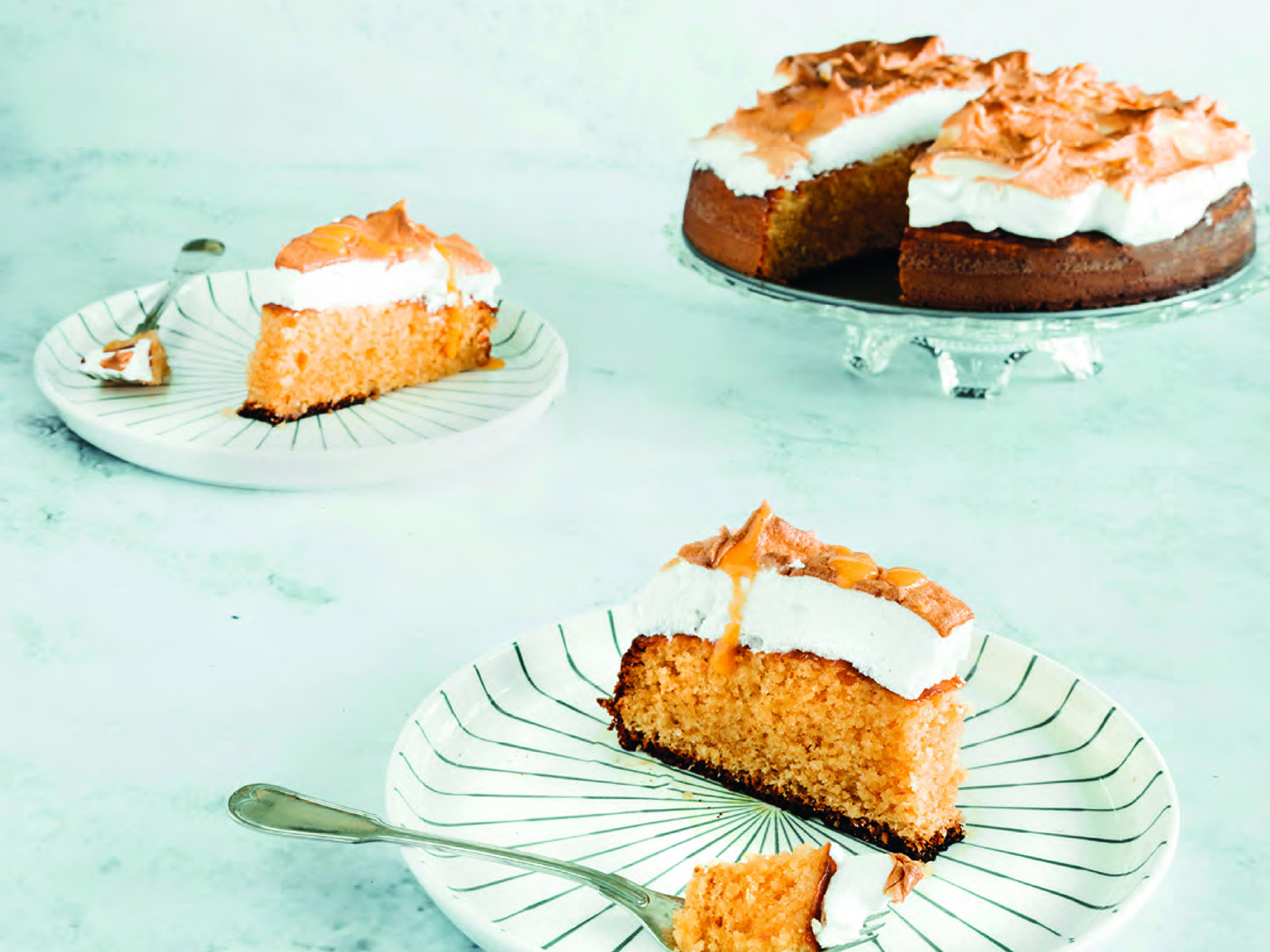 Cubra o bolo com colheradas de merengue. Leve ao forno, no grill, cerca de 5 minutos ou até o merengue ficar dourado (sem queimar).