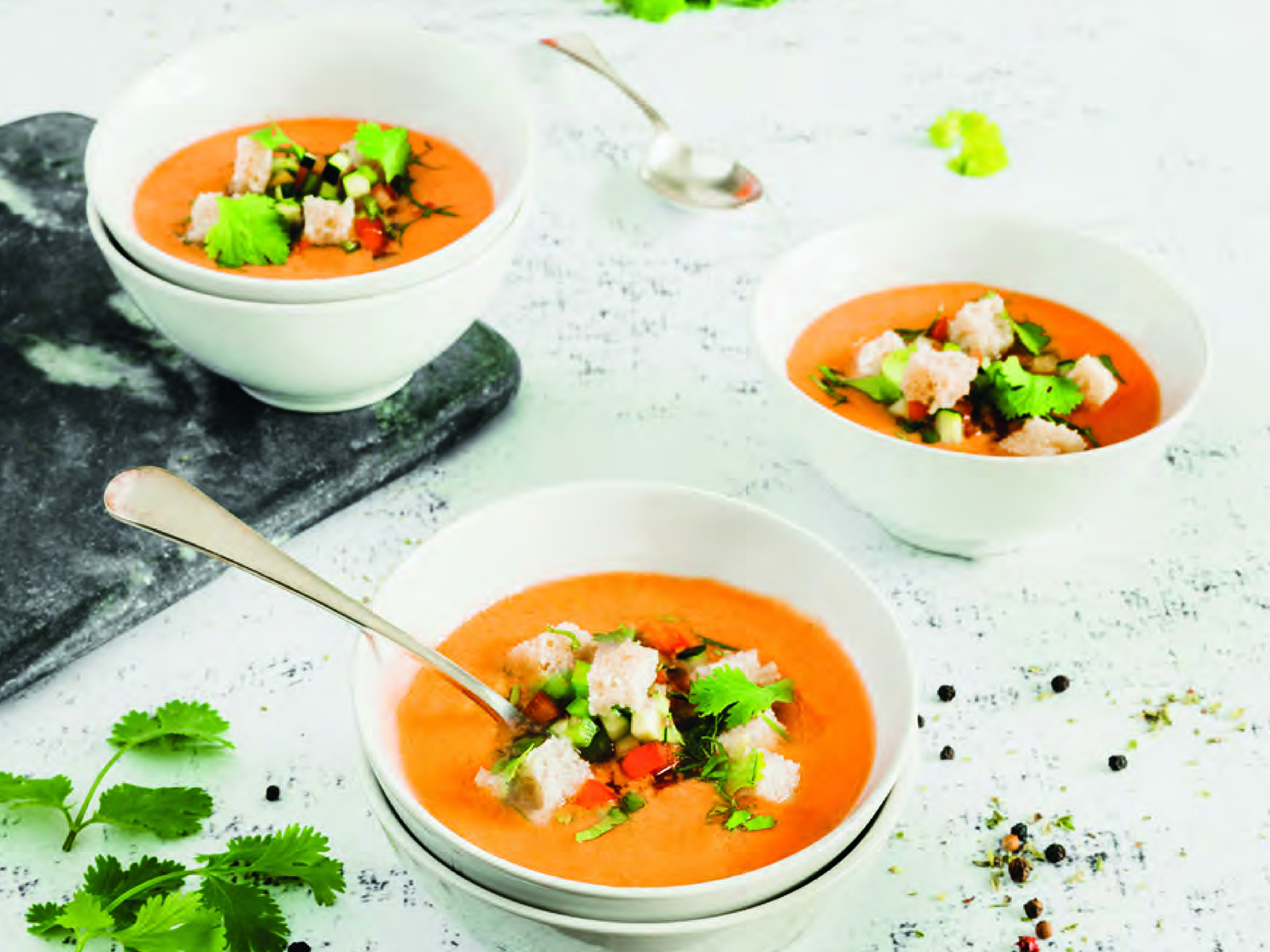 Sirva o caldo decorado com folhas de hortelã.