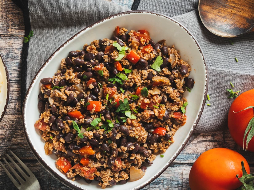 Junte o feijão-preto e o milho e envolva com a espátula. Sirva quente com tacos ou esparguete cozido.