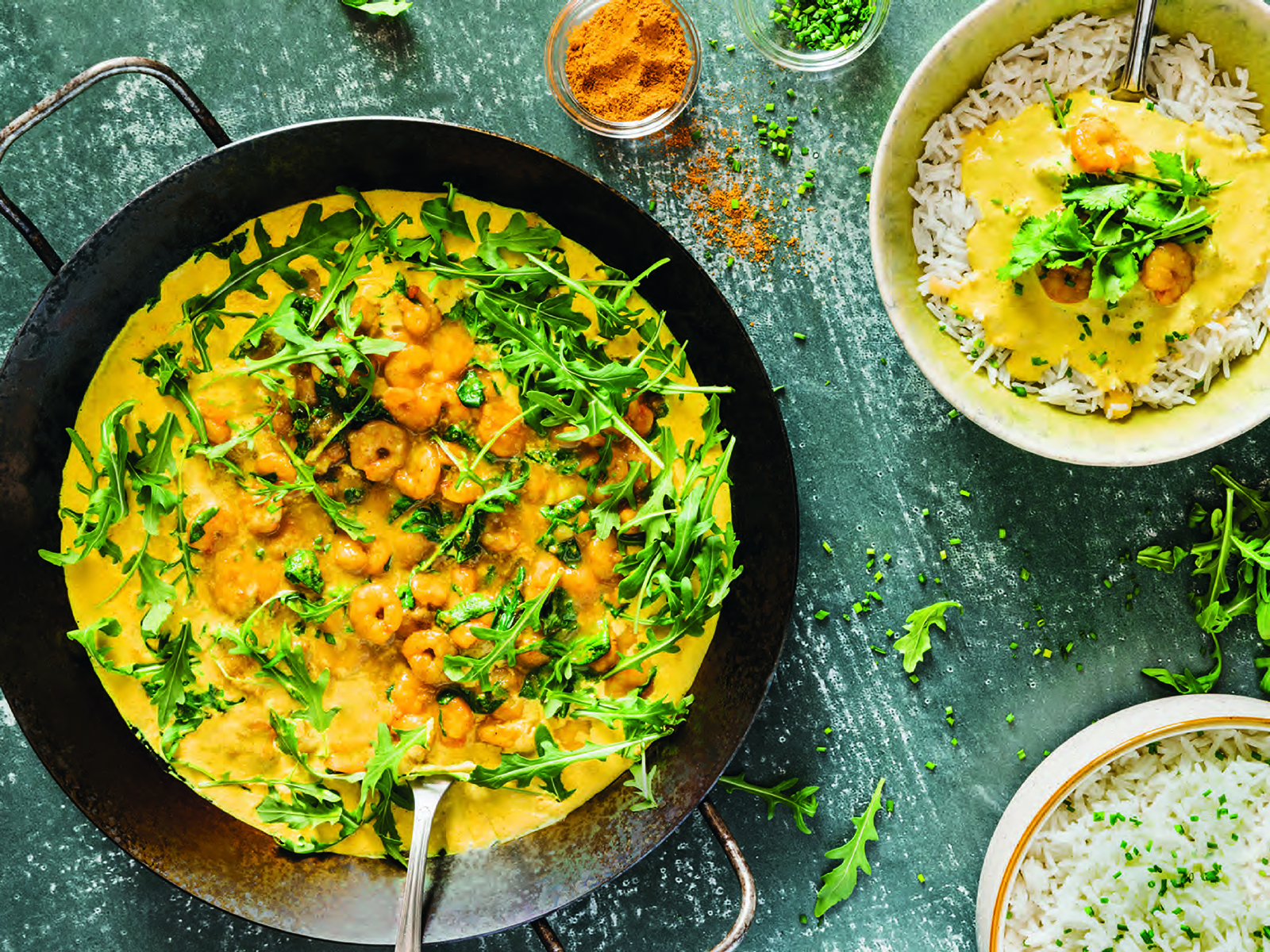 No final do programa, junte os restantes coentros picados grosseiramente e envolva com a espátula.