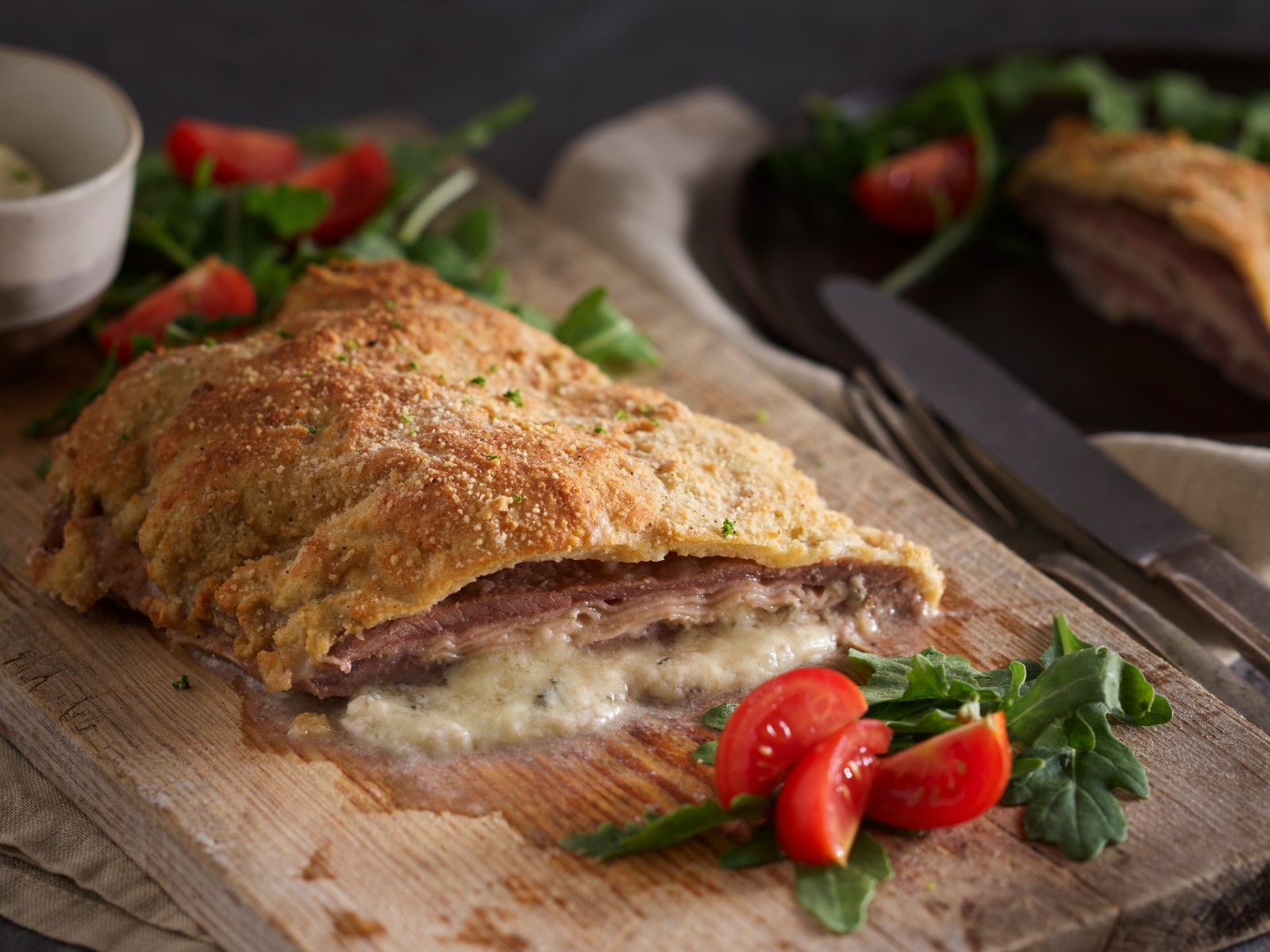 Corte a carne de porco e a de vitela em cubos pequenos (2 cm/ 2 cm) e junte-a ao copo. Tempere com sal, pimenta e noz-moscada. Acrescente o vinho, envolva com a espátula e regule 30 minutos a 100ºC, com a Rotação Inversa na velocidade 1. Retire o louro, envolva as azeitonas em rodelas e reserve.