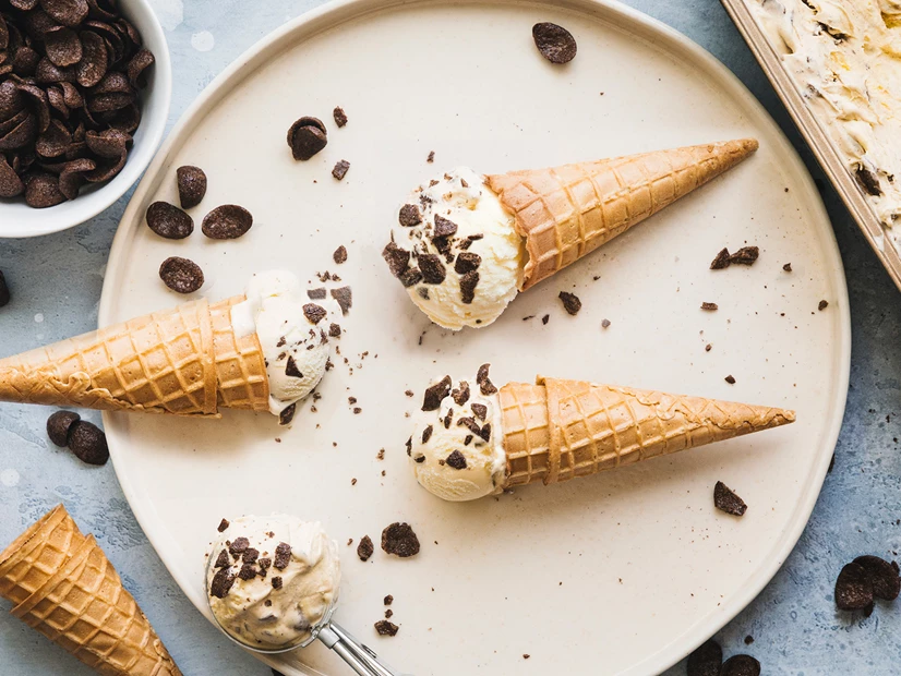 Na altura de servir, desenforme os gelados e cubra-os com o restante chocapic (no caso de ter colocado num recipiente, polvilhe o gelado com o restante chocapic).