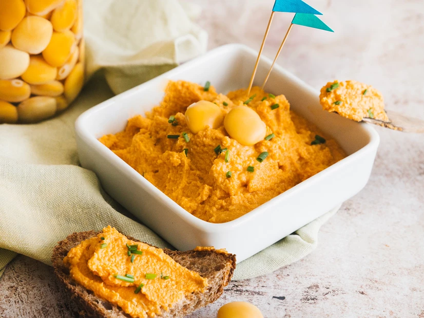 Adicione os tremoços sem casca, o pimento assado cortado em tiras, o azeite, o sumo de lima, a água, a pitada de piripíri ou a gosto, sal a gosto (se necessário), pimenta a gosto e o pimentão-doce fumado (opcional), e programe 1 minuto na velocidade 7.