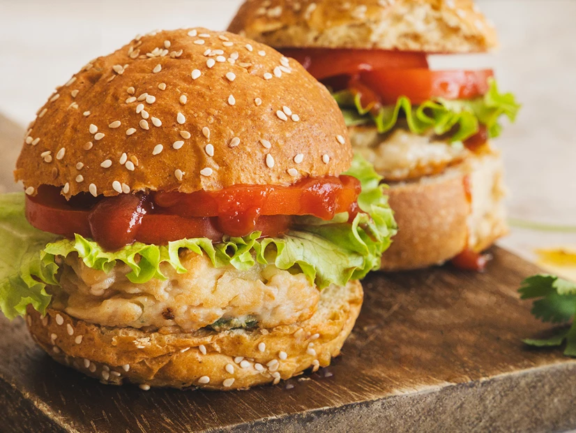 Monte os hambúrgueres dispondo os ingredientes pela seguinte ordem: base do pão, hambúrguer, folha de alface, rodela de tomate, maionese ou ketchup a gosto e o topo do pão.
