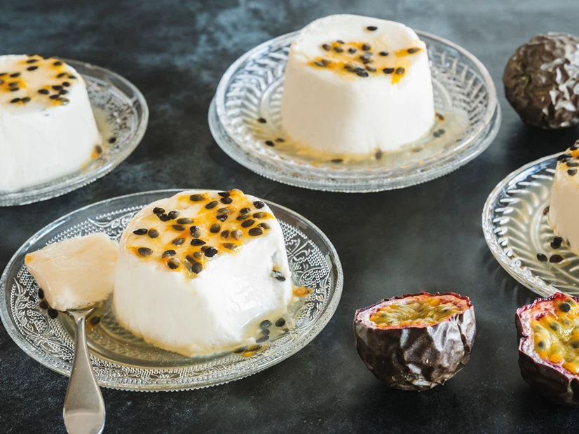 Desenforme a pannacotta. Sirva-a com o molho de maracujá por cima.