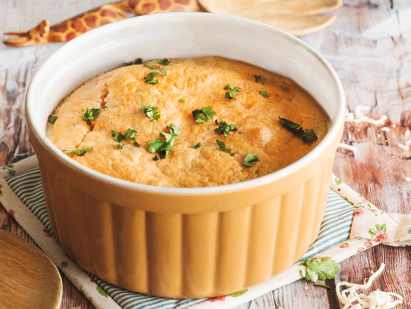 Unte uma forma com manteiga e polvilhe com farinha. Transfira o preparado para a forma e adicione o restante queijo ralado por cima (ou quantidade a gosto).
