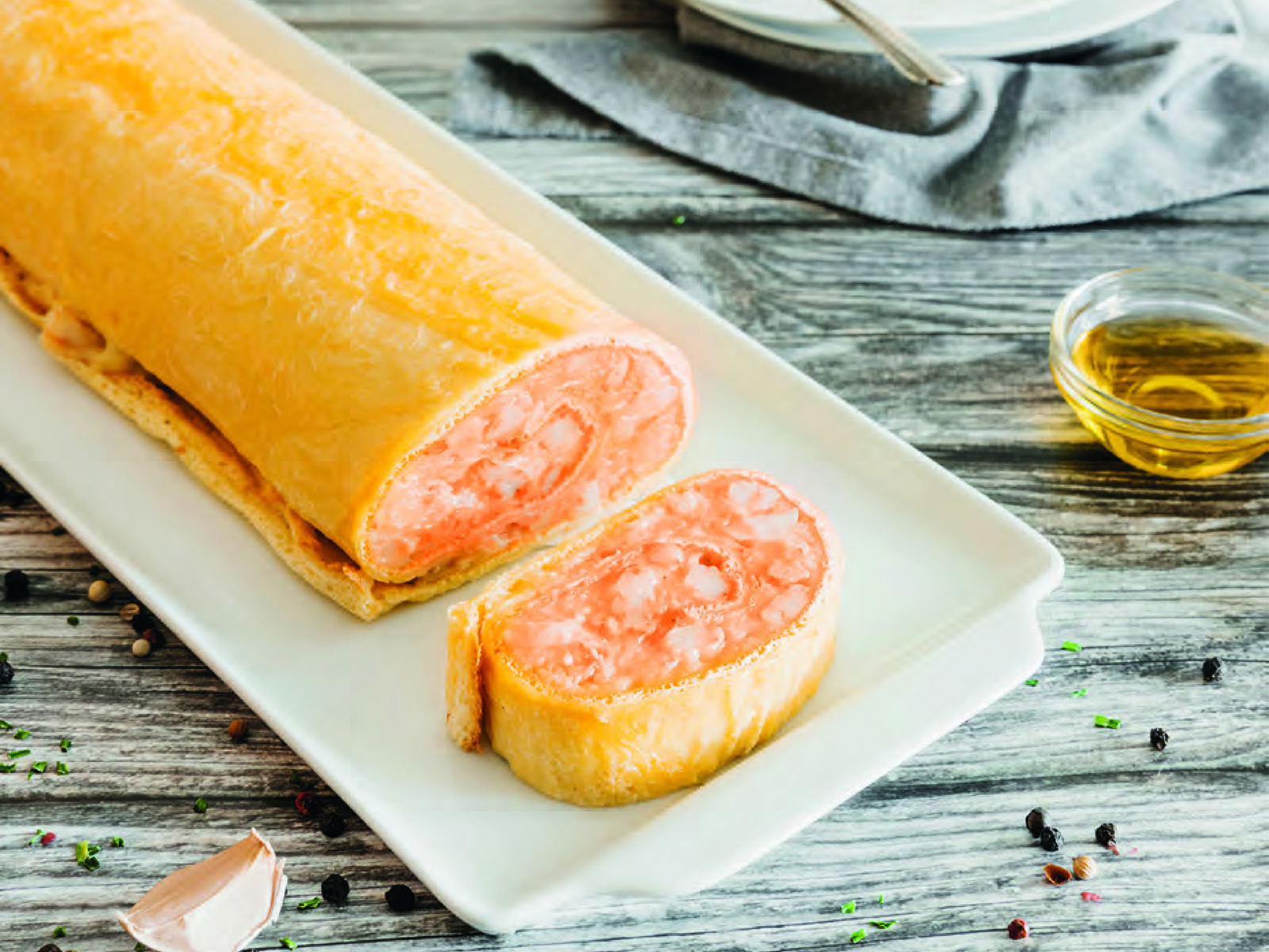 Junte as gemas e tempere com sal e pimenta a gosto. Misture 1 minuto na velocidade 4. Com a espátula, envolva as claras em castelo, suavemente e em movimentos circulares, para não perderem o ar. Verta a massa num tabuleiro retangular (40 cm/ 30 cm) forrado com papel vegetal e untado com azeite. Leve ao forno cerca de 10-12 minutos. Reserve.