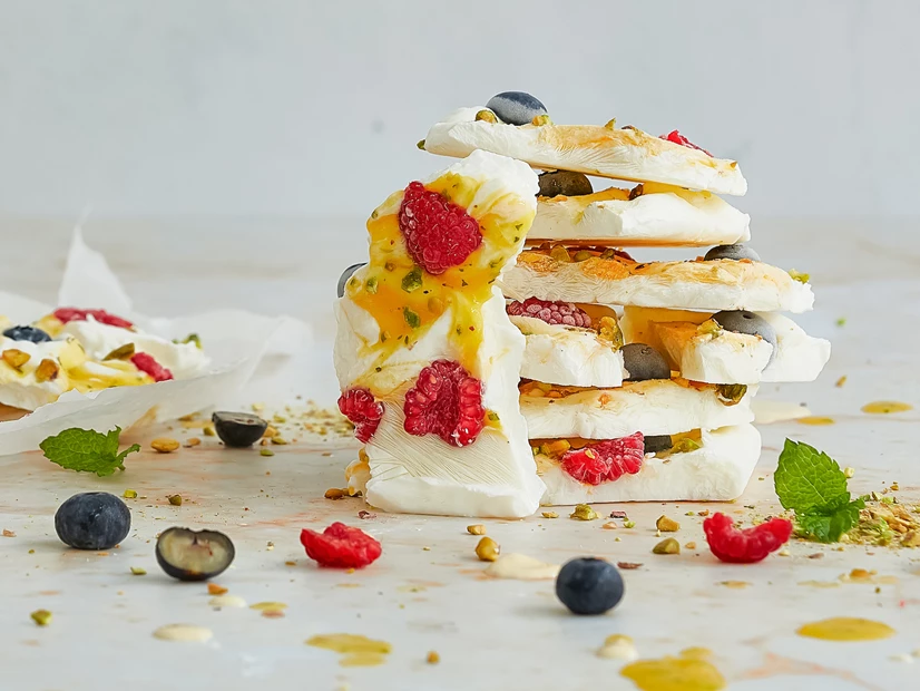 O Yogurt Bark Proteico é uma sobremesa fresca, leve e nutritiva, ideal para um snack saudável ou para saciar a vontade de um doce sem culpa. Preparado com iogurte rico em proteína e decorado com frutas frescas, combina cremosidade, frescura e textura num só pedaço.