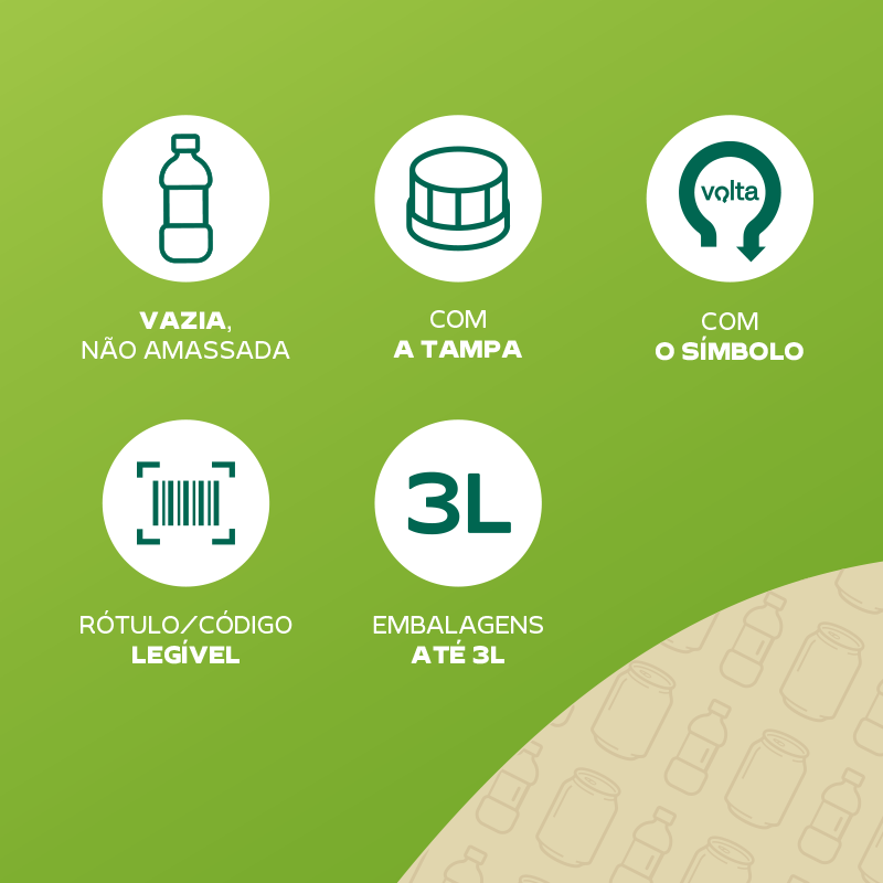 - Embalagens com rótulo “Volta”, abrangidas pelo sistema de depósito e reembolso