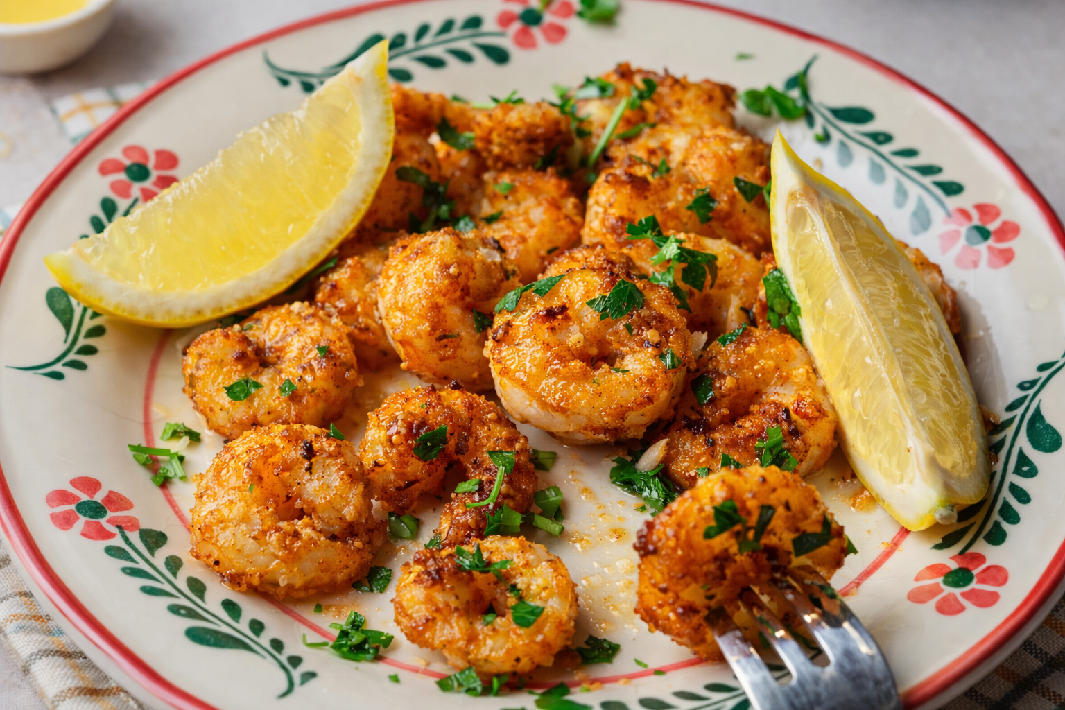 Camarão Frito com Casca, Alho e Limão