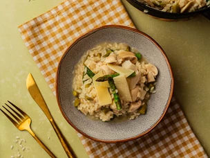 Risoto de espargos e cogumelos