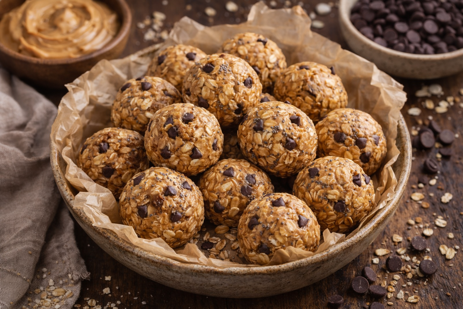 Adicionar à lista Adicionar ao plano Adicionar aos favoritos Pequeno almoço Bolas energéticas de manteiga de amendoim 30 min Fácil